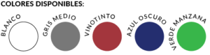 | Colores | Azul Oscuro, Blanco, Gris Medio, Verde Manzana, Vino Tinto |