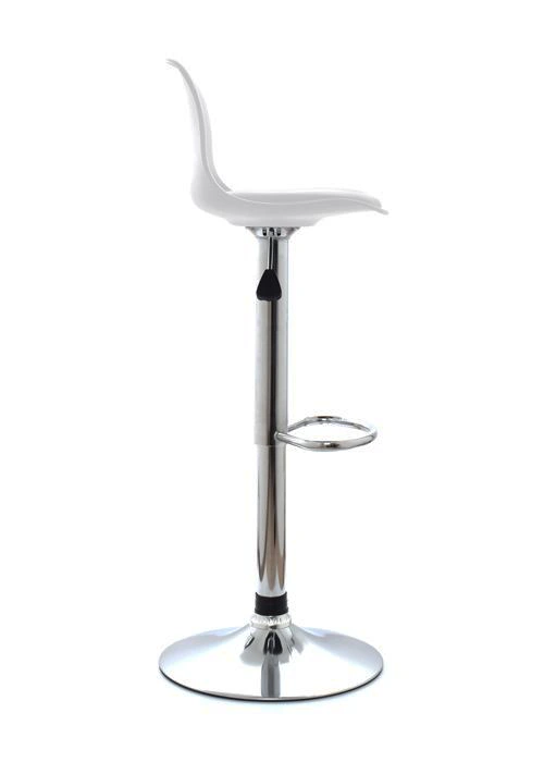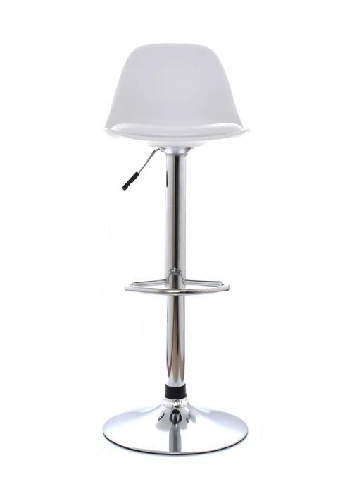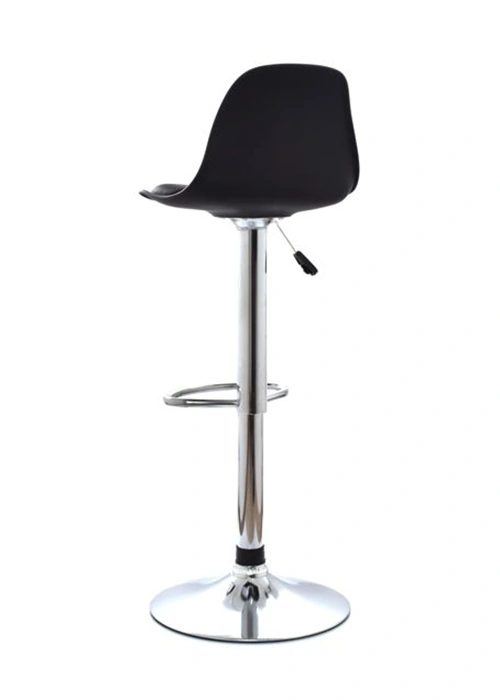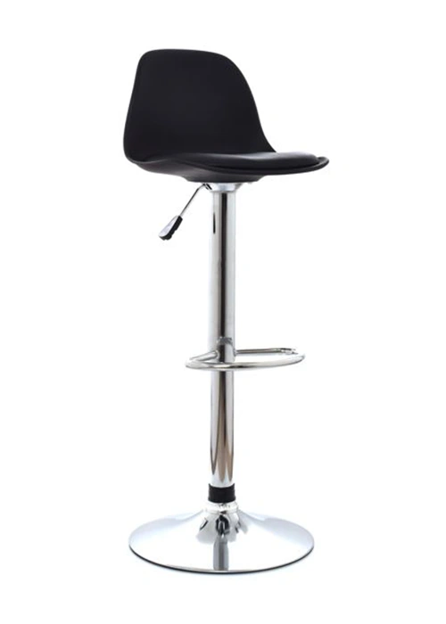 Banco giratorio regulable en altura mediante una palanca de metal localizada en el asiento.
