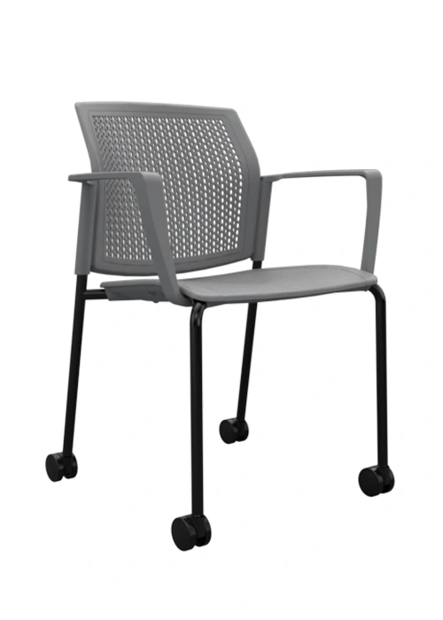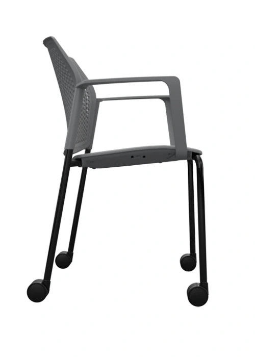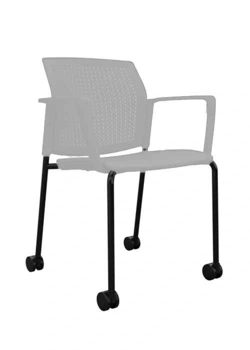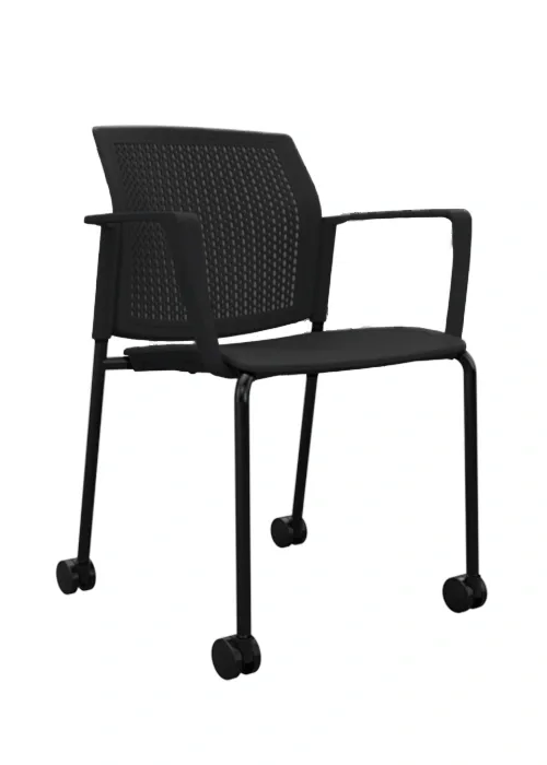 ESPALDAR PLÁSTICO MICROPERFORADO Estructura 4 patas disponible en pintura electrostática negra Brazos fijos Ruedas goma 60mm