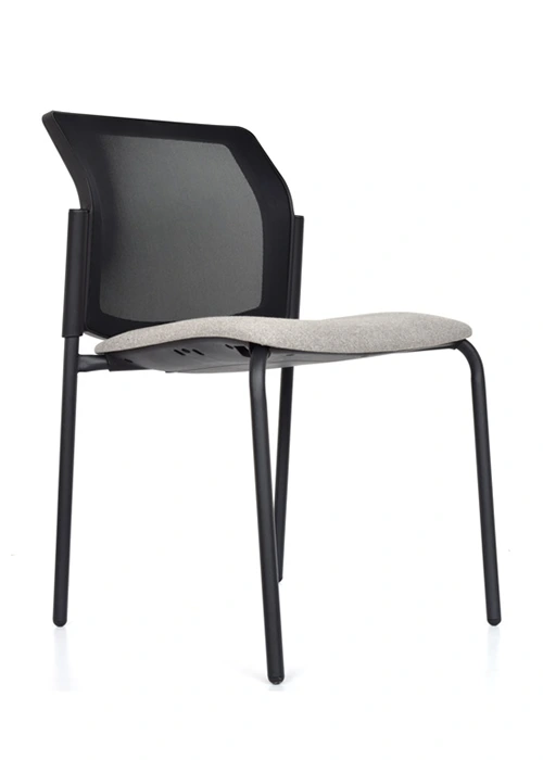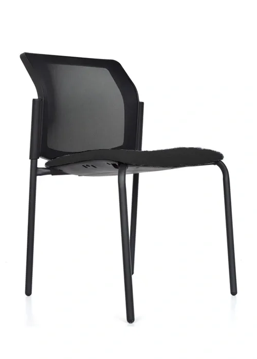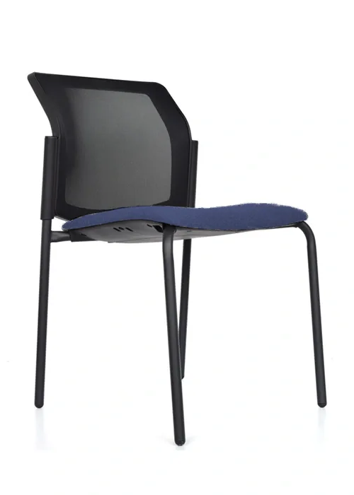Espaldar tapizado Marco en color negro Asiento tapizado en color a elegir Estructura 4 patas color negroTapones antideslizantes Apilable 4 unidades